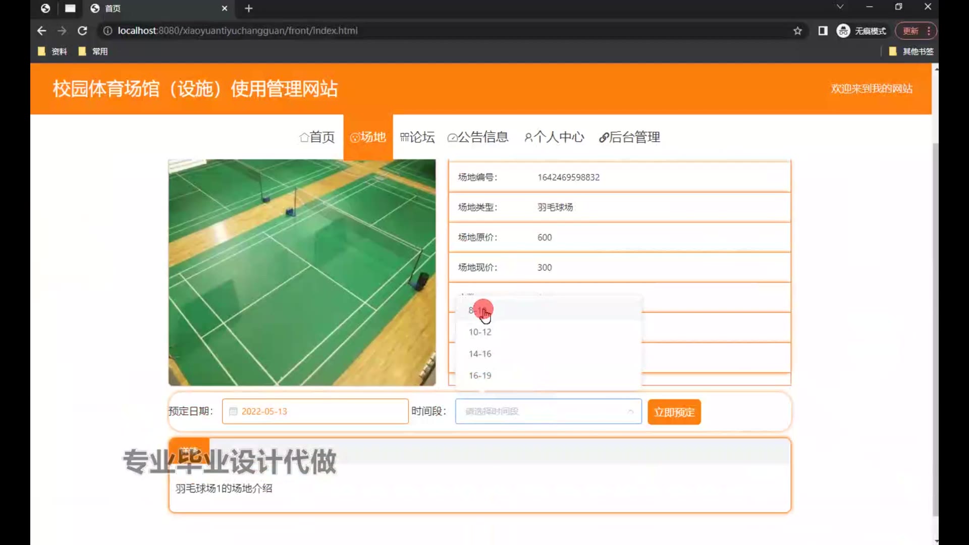 springboot校园体育场馆(设施)使用管理网站源码和论文1173